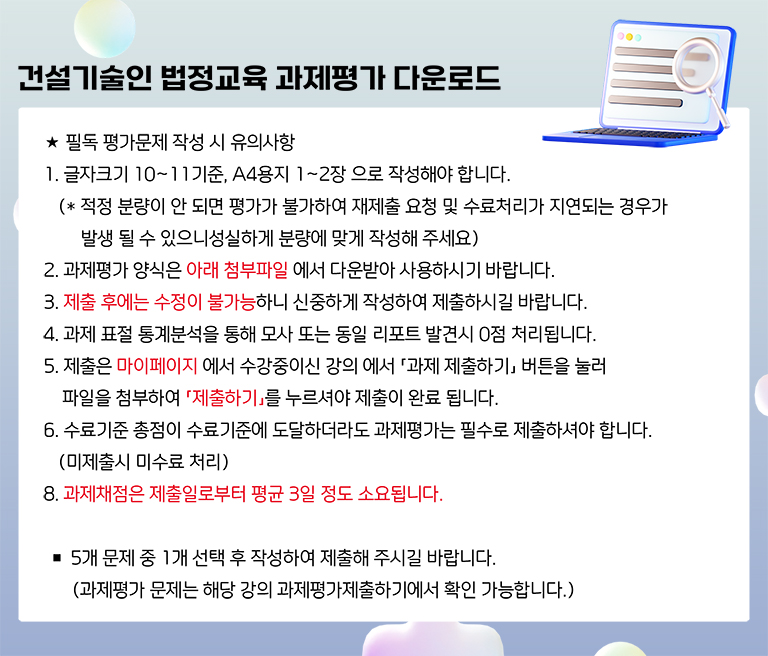 [양식] 건설기술인 법정교육 과제평가 다운로드