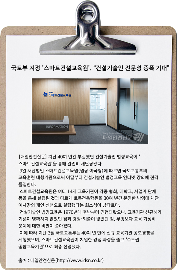 [언론보도]국토부 지정 '스마트건설교육원'. "건설기술인 전문성 증폭 기대"