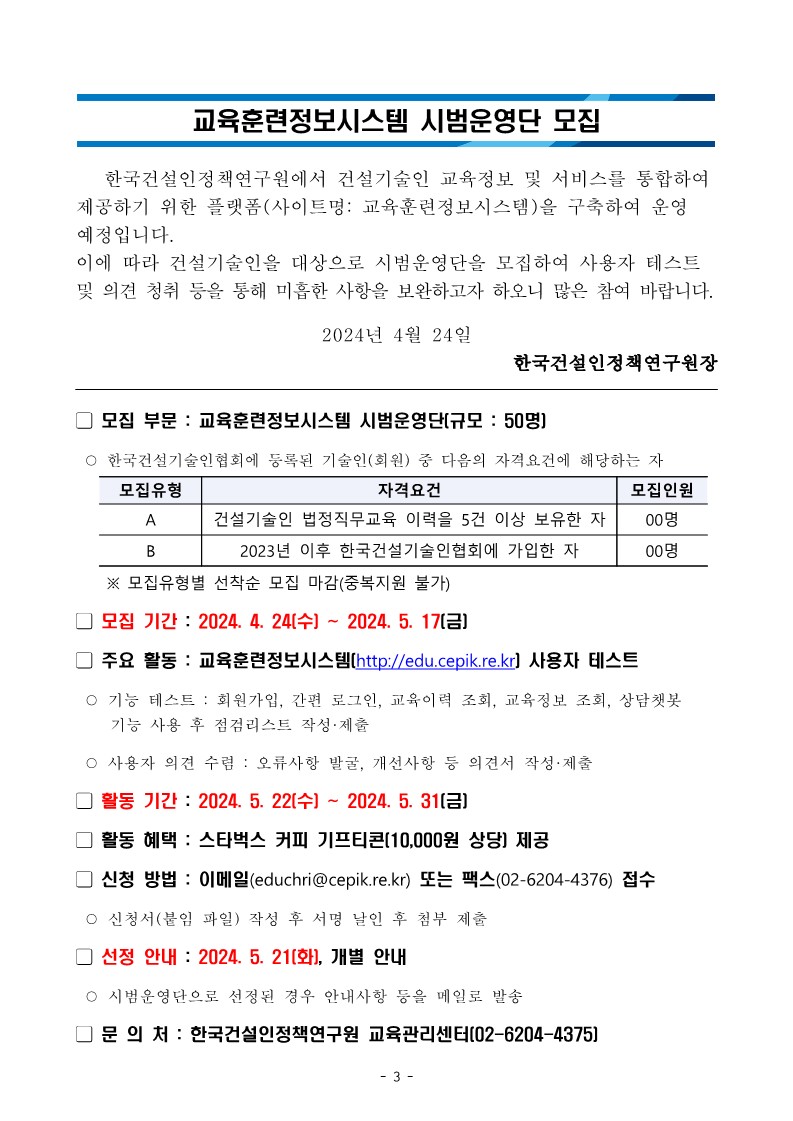 교육훈련정보시스템 시범운영단 모집