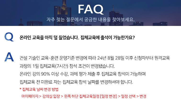 Q.온라인 교육을 아직 덜 들었습니다. 집체교육에 출석이 가능한가요?