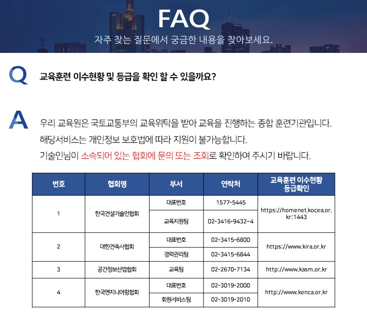 Q.교육훈련 이수현황 및 등급을 확인 할 수 있을까요?