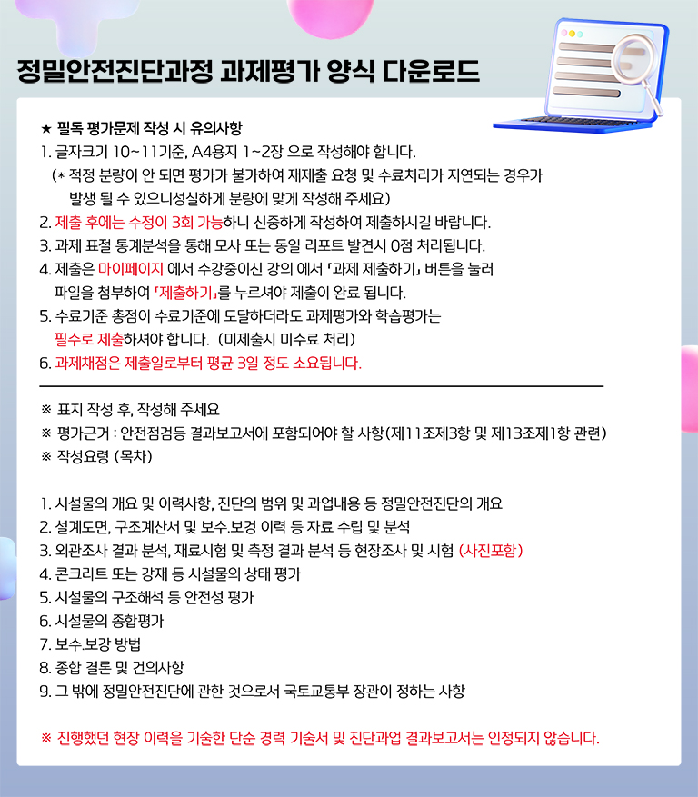 [양식] 정밀안전진단과정 과제평가 양식 다운로드