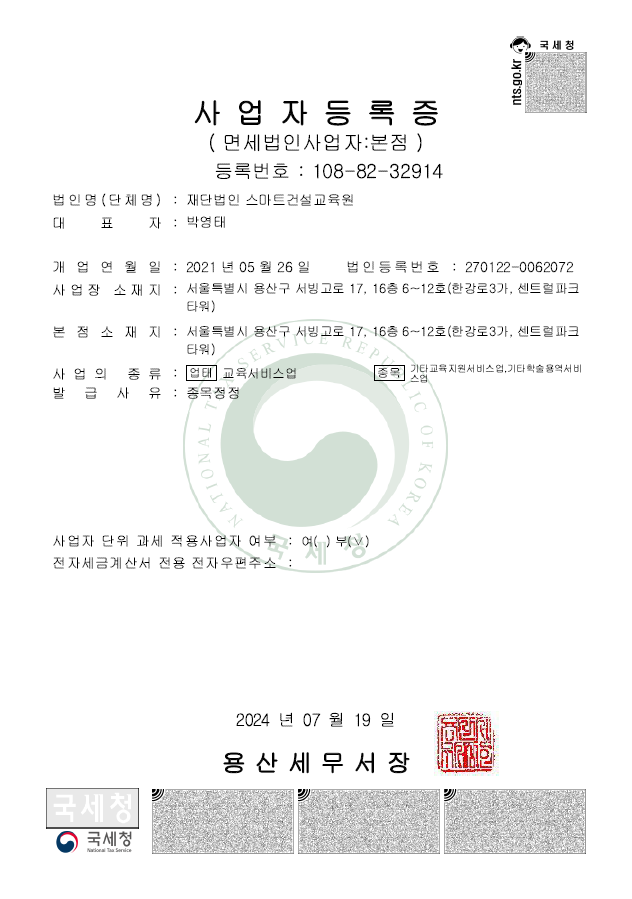 [스마트건설교육원] 법인사업자등록증 & 통장사본