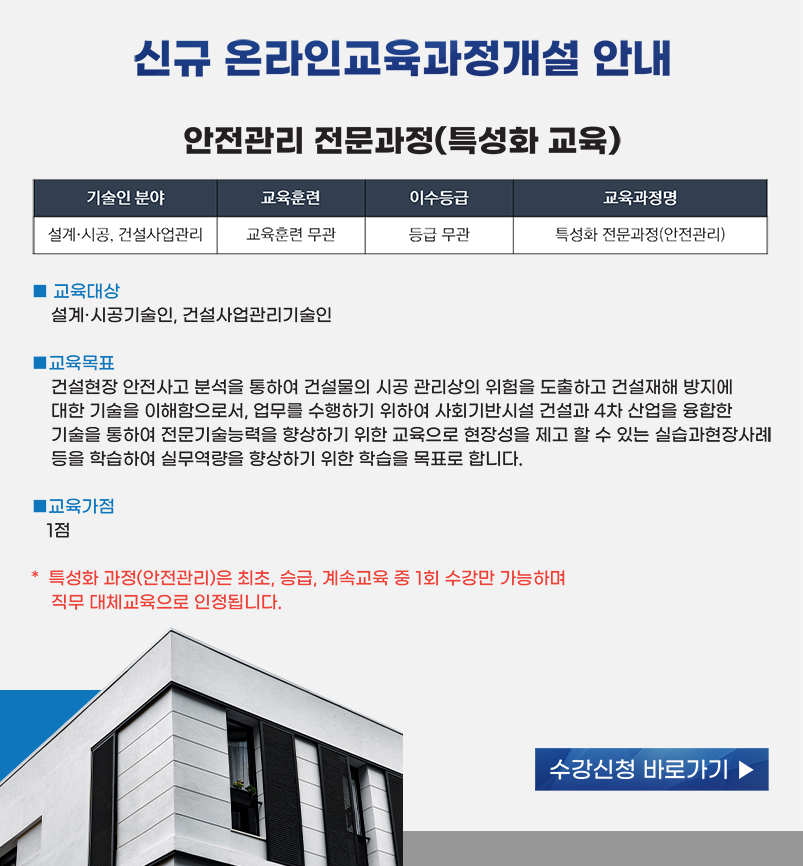 신규 온라인교육과정개설 안내 (특성화 전문과정(안전관리))