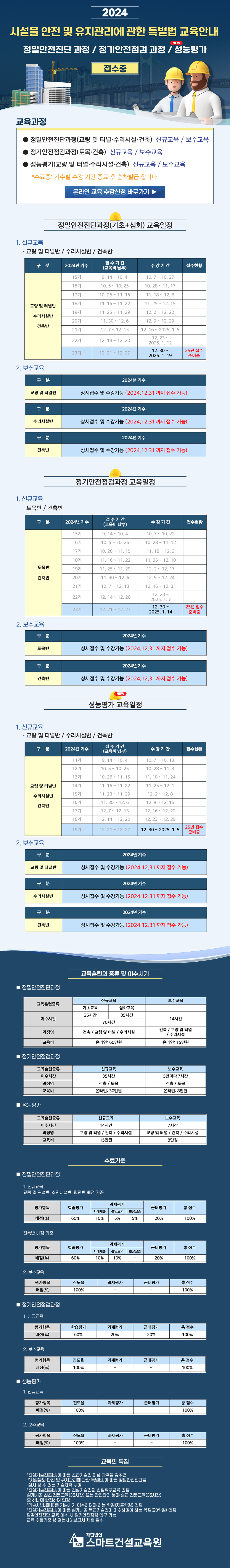 [정밀안전진단 / 정기안전점검 / 성능평가] 2024년 교육일정 및 수강안내