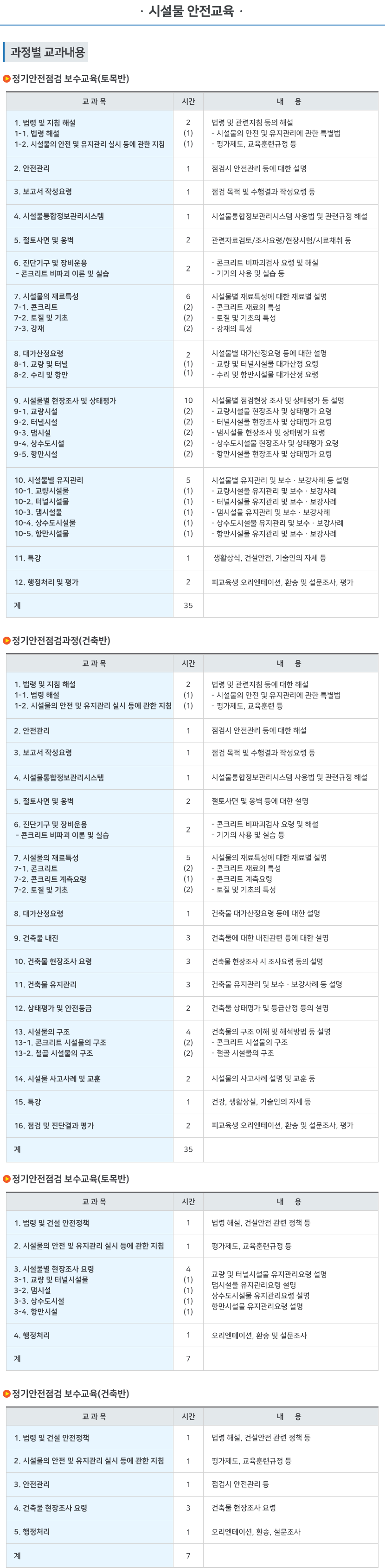 건설업교육 과정 안내